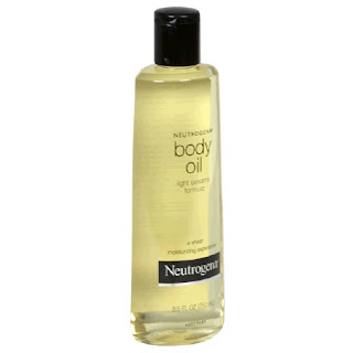 of my many body washes.Next, while I'm still a little damp, I slather on Neutrogena's Body oil. It's a light sesame oil that disappears into ur skin. No greasy feeling at all! I usually get the fragrance free version. I don't want any competition of scents on my glistening bodaayyy. (Walmart's Equate body oil is good too).